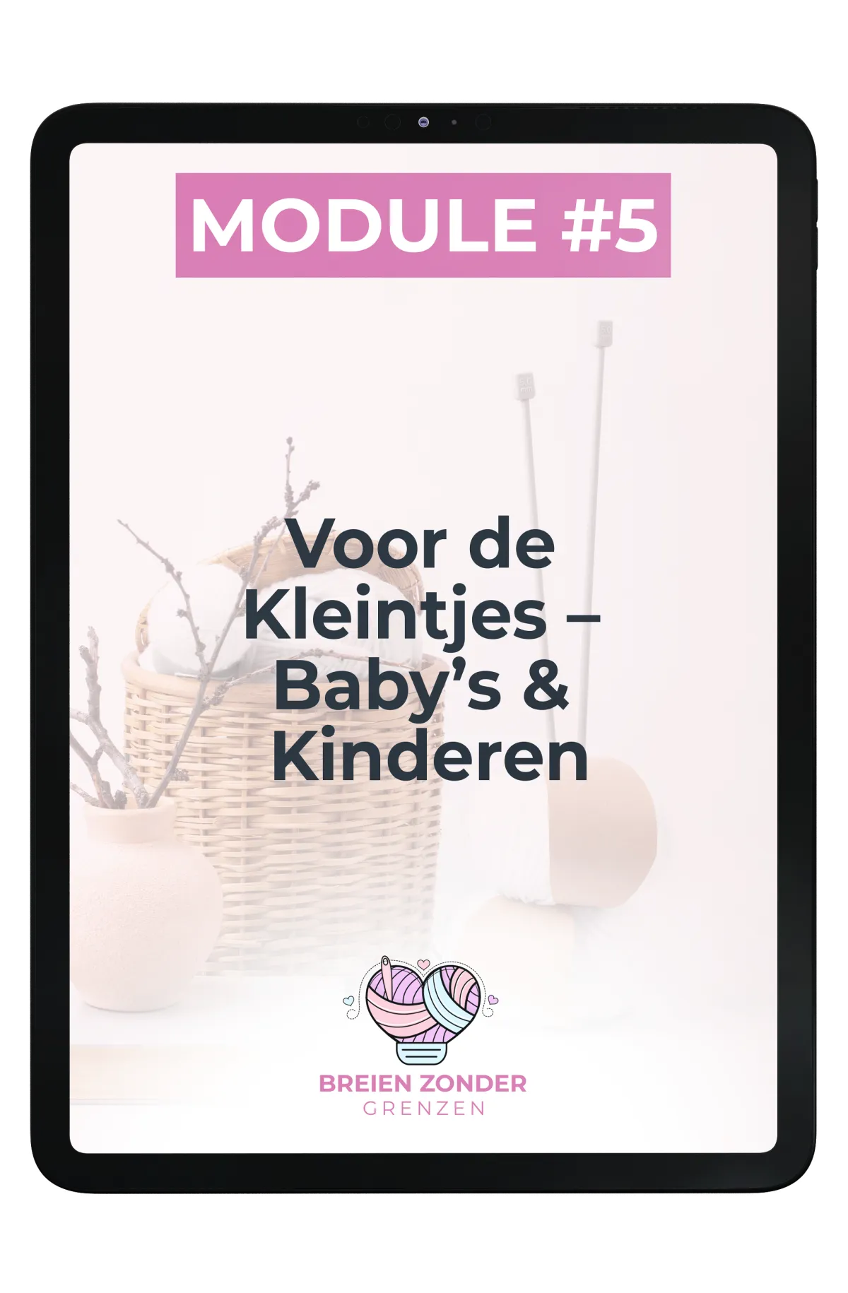 In deze module vind je de allerliefste patronen voor baby’s en kinderen – van slofjes tot dekentjes. Je krijgt kant-en-klare ontwerpen die veilig, zacht en schattig zijn, ideaal voor kraamcadeaus of je eigen (klein)kind. Alles is gemaakt met kindvriendelijke garens en duidelijke uitleg, zodat je snel resultaat hebt met projecten die echt gekoesterd worden.